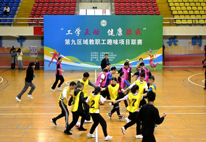 11 月 8 日,由江西省教育工会主办、宜春学院工会承办、宜春学院体育学院协办的 “工学互动 健康你我”2025年江西省教育工会第九区域教职工趣味项目联赛,在宜春学院体育馆圆满落幕。此次联赛吸引了第九区域教育系统的8 支代表队、近100名教职工参加。