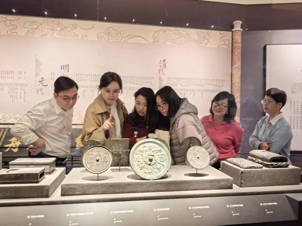 随后,全体成员来到樟树博物馆。作为江西省成立最早的县级综合性地志博物馆和国家二级博物馆,郭沫若先生与宿白先生题写的馆名见证着其厚重底蕴。在7000余平方米的展厅内,14967件馆藏文物涵盖石器、陶器、青铜器、名人字画等多个类别,《樟树五千年》《工商雄镇》等基本陈列系统展现了樟树从远古到现代的历史变迁与文化积淀。从远古先民的生产工具到明清时期的商业繁荣,从红色革命印记到当代发展成就,一件件文物、一幅幅图景让师生们全方位领略了江西经济发展历史与樟树药都的历史文脉与时代风采。