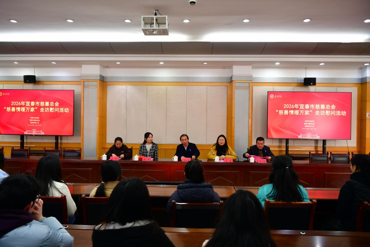 (校工会 供稿)岁寒情暖,新春将至。1月12日上午,市民政局、市慈善总会联合宜春学院,在校本部办公楼413会议室开展2026年“慈善情暖万家”困难大学生走访慰问活动。宜春学院党委委员、副校长李建军,宜春市慈善总会监事长姜敏等领导出席,与30名学生共话成长、共迎新春。活动由宜春学院工会主席罗三强主持。